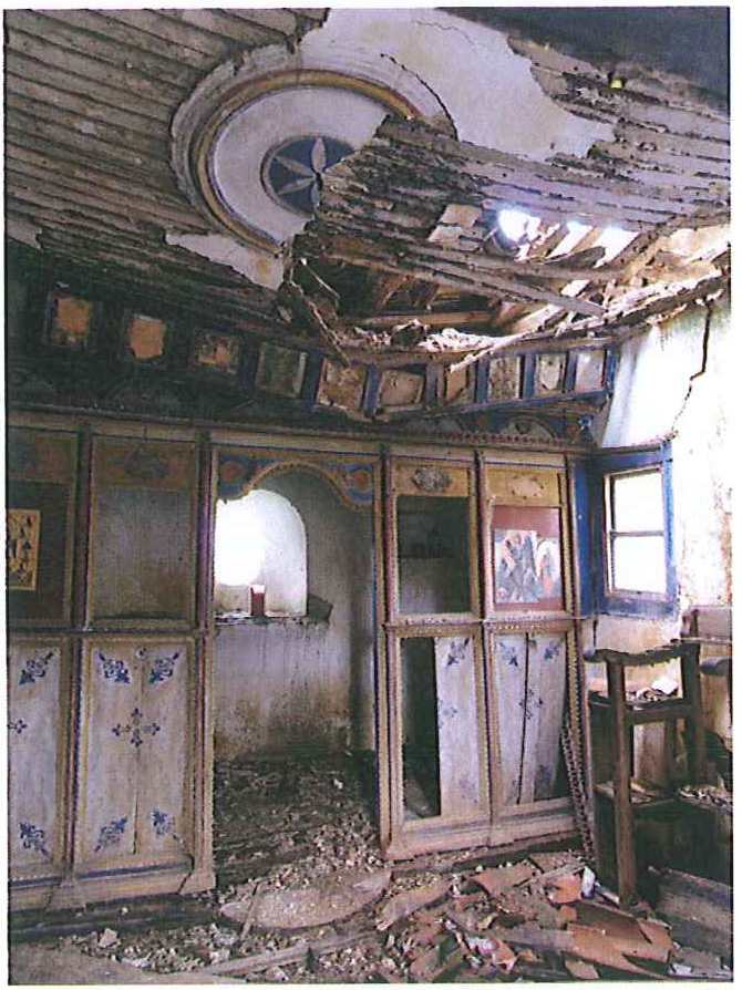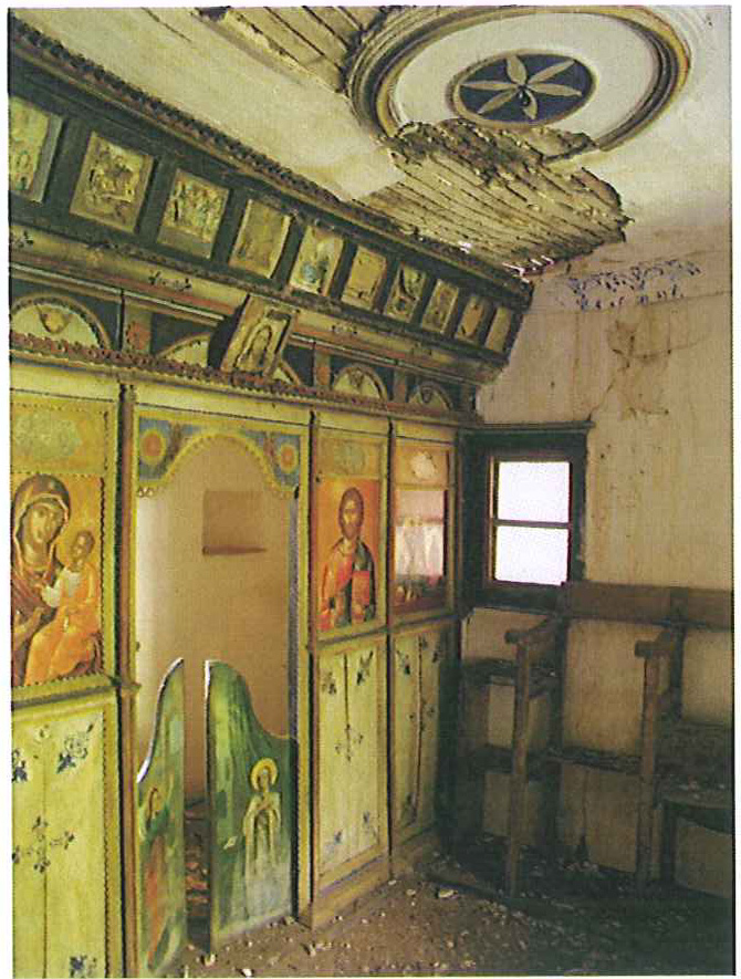 Οι εσωτερικές τοιχοποιίες ήταν ξυλόπηκτες (τσατμάδες), όπως διακρίνεται σε παλαιότερες φωτογραφίες που αποτυπώνουν το δάπεδο, την οροφή, τη διαρρύθμιση του εσωτερικού και το τέμπλο. Το Ιερό Βήμα ήταν ελαφρώς υπερυψωμένο, ενώ το λιτό ξύλινο τέμπλο διέθετε δύο ανοίγματα, υπογραμμίζοντας τον απέριττο χαρακτήρα του παρεκκλησίου.