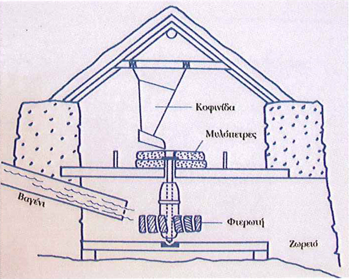 Σχεδιάγραμμα λειτουργίας μύλου ελληνικού τύπου
